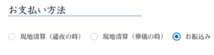 - 「お支払い方法」を1つ選択。「お振込み」の場合「ご請求先」入力項目が出てきます